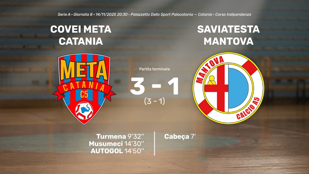 Sconfitta onorevole col punteggio di 3-1 per il Saviatesta Mantova opposto nell’ottavo turno di campionato ai campioni d’Italia del Meta Catania. I biancorossi di mister Milella hanno fatto il possibile per contrastare lo strapotere tecnico dei padroni di casa, passando in vantaggio al 7′ del primo tempo grazie ad un gran tiro fuori area scagliato da Cabeca, subendo il ritorno dei...Read More