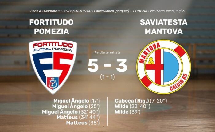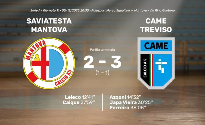 Sconfitta onorevole col punteggio di 3-1 per il Saviatesta Mantova opposto nell’ottavo turno di campionato ai campioni d’Italia del Meta Catania. I biancorossi di mister Milella hanno fatto il possibile per contrastare lo strapotere tecnico dei padroni di casa, passando in vantaggio al 7′ del primo tempo grazie ad un gran tiro fuori area scagliato da Cabeca, subendo il ritorno dei...